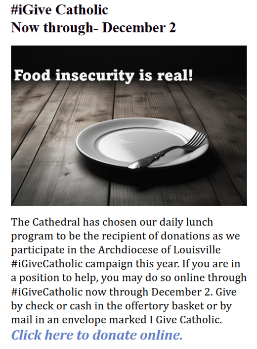 View the video below that encourages us to give hope to all as we join our prayers and gifts with others across our archdiocese to meet critical needs. If you have not received a CSA appeal in the mail, you make pick one up in the pamphlet rack in the back of church.